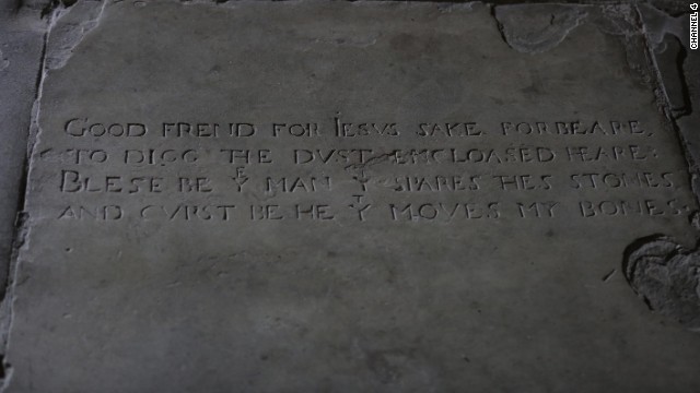 Buen amigo, por Jesús abstente de cavar en el polvo aquí encerrado. Bendito sea el hombre que respete estas piedras y maldito el que remueva mis huesos.
